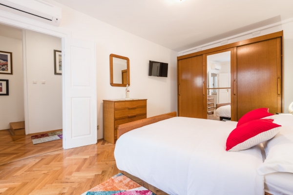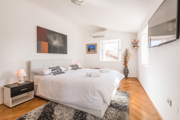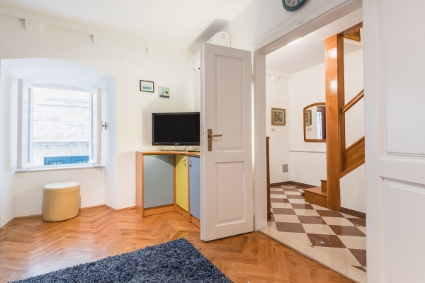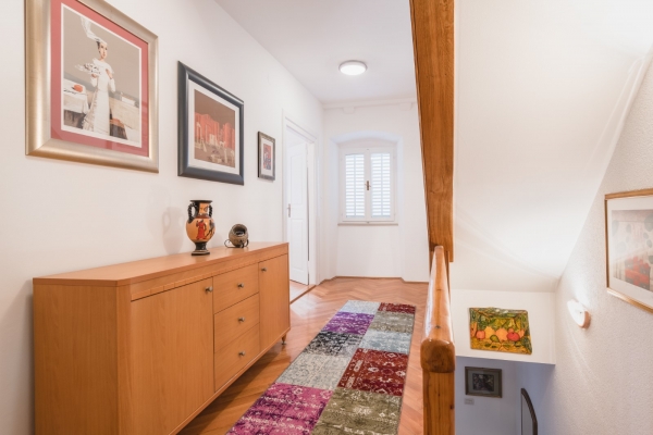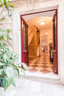The house is located in a side street, away from the noise and crowds, only 60 meters from Stradun, the most beautiful street in town. It consists of 5 floors and each floor has 43 m2 of net area (215 m2 in total). The floor in the basement has a separate entrance and there is a large room and a space where long ago there was a well in which the owners planned to make a wine cellar. This space can be easily converted into business space, which is an additional plus for the property. On the ground floor there is a hallway and staircase, a bedroom and a bathroom; on the 1st floor hallway and staircase, bedroom; on the 2nd floor hallway and staircase, living room with balcony; and in the attic there is a hallway, bedroom, bathroom and kitchen.