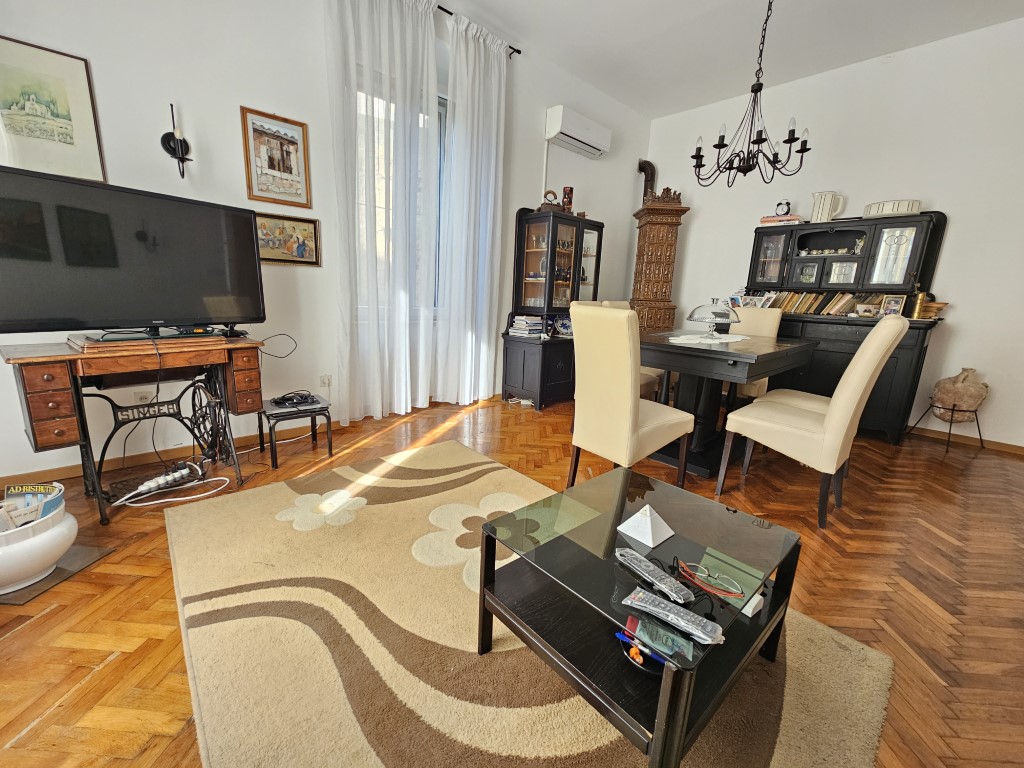 The apartment consists of six rooms, a kitchen, bathroom, hallway, and an additional WC. In practice, the property is divided into two separate units, each with its own entrance. One part is currently used for rental purposes, while the other is used as a private residence.
