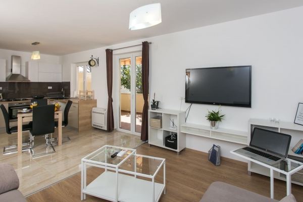 Gornji Kono, for sale two apartments on the ground floor in a smaller residential building. The flats have been recently renovated and are very well renovated and furnished. One is a studio but with a separate bedroom, of 21.08 m2 and the other apartment is 62.39m2 whith a south-facing terrace of about 25m2 and a garden of about 10m2. Sea view from the terrace. Apartments are for sale including with all the furniture.