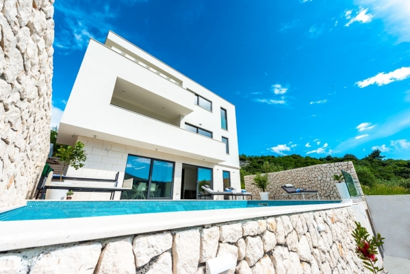 Na prodaju luksuzna vila s bazenom. Vila ukupne stambene površine od cca 200m2 koja se sastoji od tri etaže. Na prvoj etaži se nalazi dnevni boravak, kuhinja s blagovanicom s izlaskom na terasu dok na gornjim etažama su smještene četiri spavaće sobe s kupaonicama.