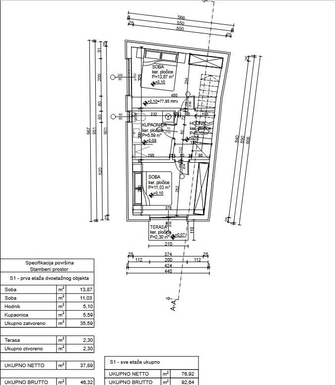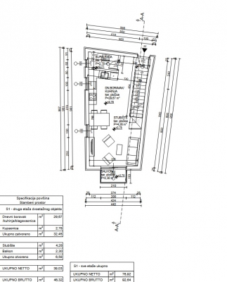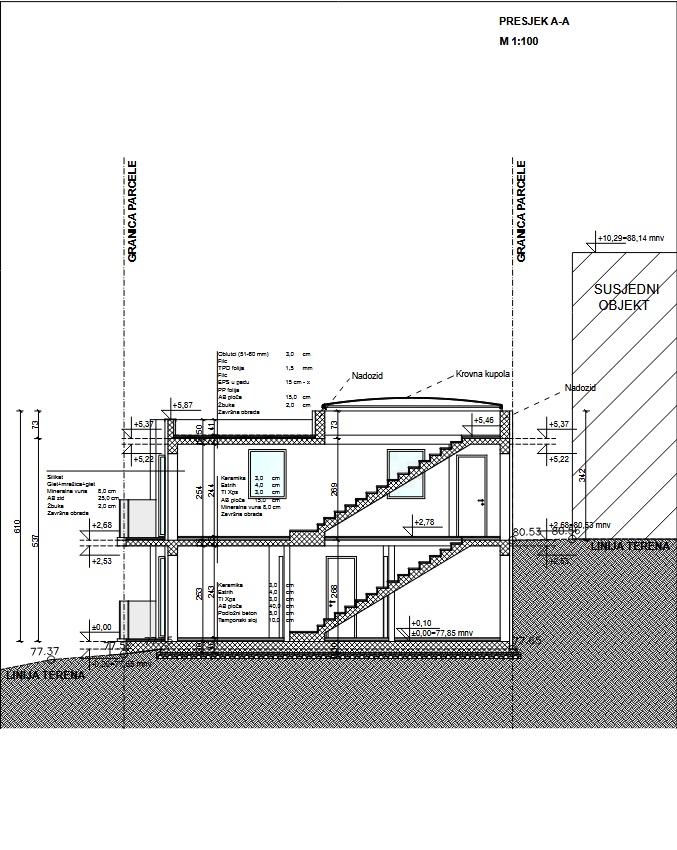 Prodaje se dvoetažni duplex ukupne stambene površine 77 m², smješten u mirnom i ugodnom okruženju. Kuća je trenutno u trošnom stanju i zahtijeva potpunu obnovu i rekonstrukciju, ali postoji cijeli arhitektonski projekt koji omogućuje vrlo funkcionalan i iskoristiv prostor – idealan za prilagodbu modernom životnom stilu.